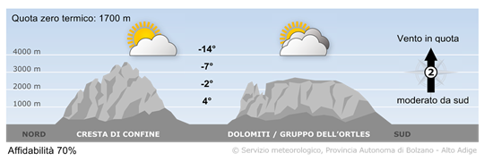 Le nubi basse ridurranno la visibilità soprattutto sui gruppi montuosi meridionali. Verso nord saranno possibili delle schiarite, più lunghi sulla Val Venosta.